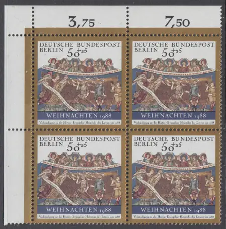 BERLIN 1988 Michel-Nummer 829 postfrisch BLOCK ECKRAND oben links - Weihnachten