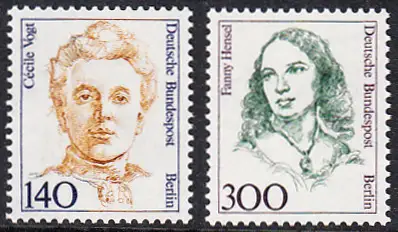 BERLIN 1989 Michel-Nummer 848-849 postfrisch SATZ(2) EINZELMARKEN - Frauen der deutschen Geschichte: Cécile Vogt, Hirnforscherin / Fanny Hensel, Musikerin