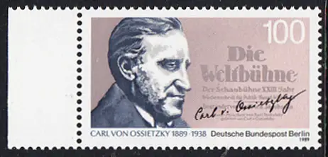 BERLIN 1989 Michel-Nummer 851 postfrisch EINZELMARKE RAND links - Carl von Ossietzky, Publizist