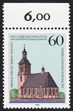 BERLIN 1989 Michel-Nummer 855 postfrisch EINZELMARKE RAND oben (a) - Reformation im Kurfürstentum Brandenburg