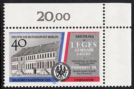 BERLIN 1989 Michel-Nummer 856 postfrisch EINZELMARKE ECKRAND oben rechts - Französisches Gymnasium, Berlin