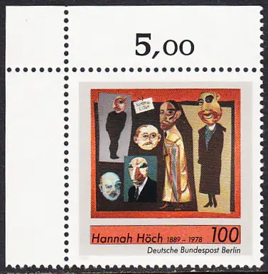 BERLIN 1989 Michel-Nummer 857 postfrisch EINZELMARKE ECKRAND oben links - Hannah Höch, Malerin