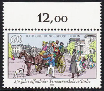 BERLIN 1990 Michel-Nummer 861 postfrisch EINZELMARKE RAND oben - Öffentlicher Personennahverkehr in Berlin