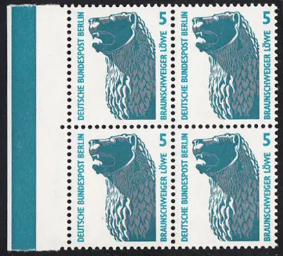 BERLIN 1990 Michel-Nummer 863 postfrisch BLOCK RÄNDER links - Sehenswürdigkeiten: Löwenstandbild, Braunschweig
