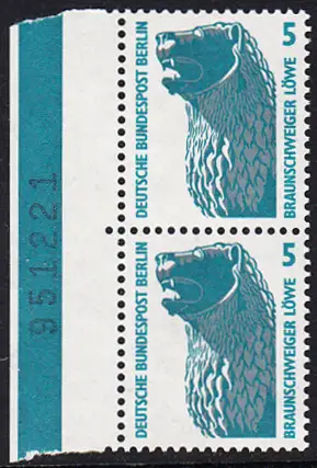 BERLIN 1990 Michel-Nummer 863 postfrisch vert.PAAR RAND links (b) - Sehenswürdigkeiten: Löwenstandbild, Braunschweig