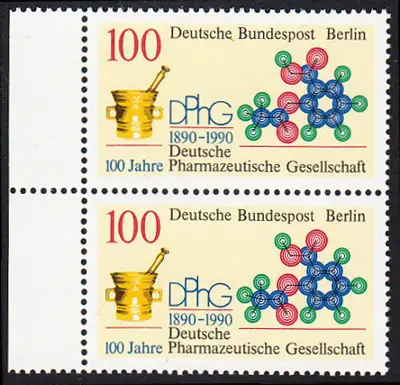 BERLIN 1990 Michel-Nummer 875 postfrisch vert.PAAR RAND links - Deutsche Pharmazeutische Gesellscbaft (DPhG)