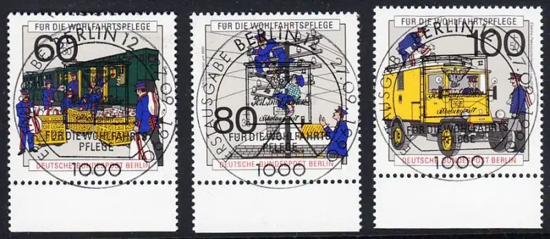 BERLIN 1990 Michel-Nummer 876-878 gestempelt SATZ(3) EINZELMARKEN RÄNDER unten
