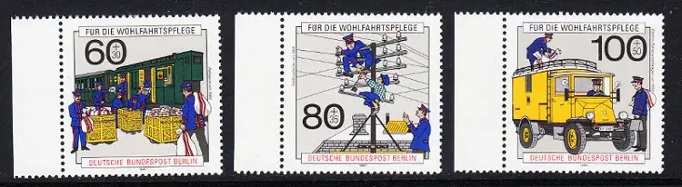 BERLIN 1990 Michel-Nummer 876-878 postfrisch SATZ(3) EINZELMARKEN RÄNDER links - Geschichte der Post und Telekommunikation