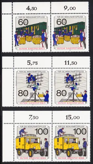BERLIN 1990 Michel-Nummer 876-878 postfrisch SATZ(3) horiz.PAARE ECKRÄNDER oben links - Geschichte der Post und Telekommunikation