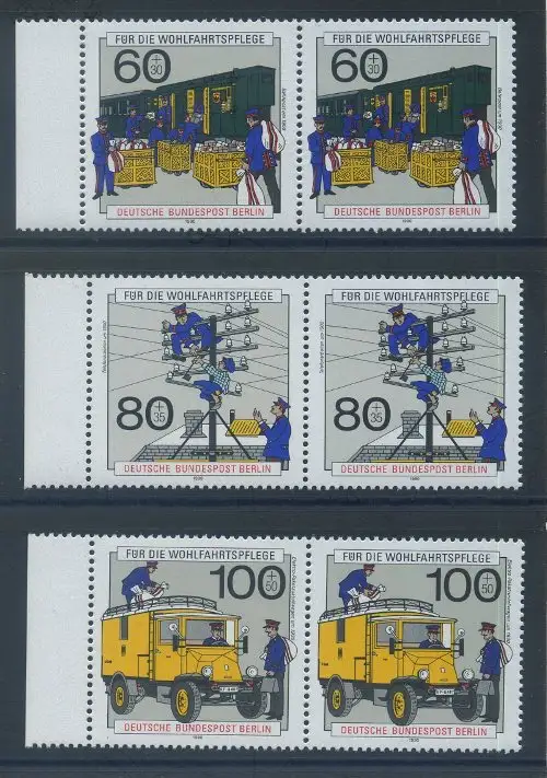 BERLIN 1990 Michel-Nummer 876-878 postfrisch SATZ(3) horiz.PAARE RÄNDER links - Geschichte der Post und Telekommunikation