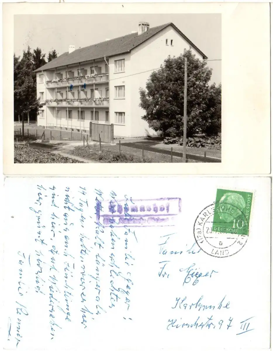 BRD 1959, Landpost Stpl. THOMASHOF über Karlsruhe (Baden) auf sw-AK m. 10 Pf.