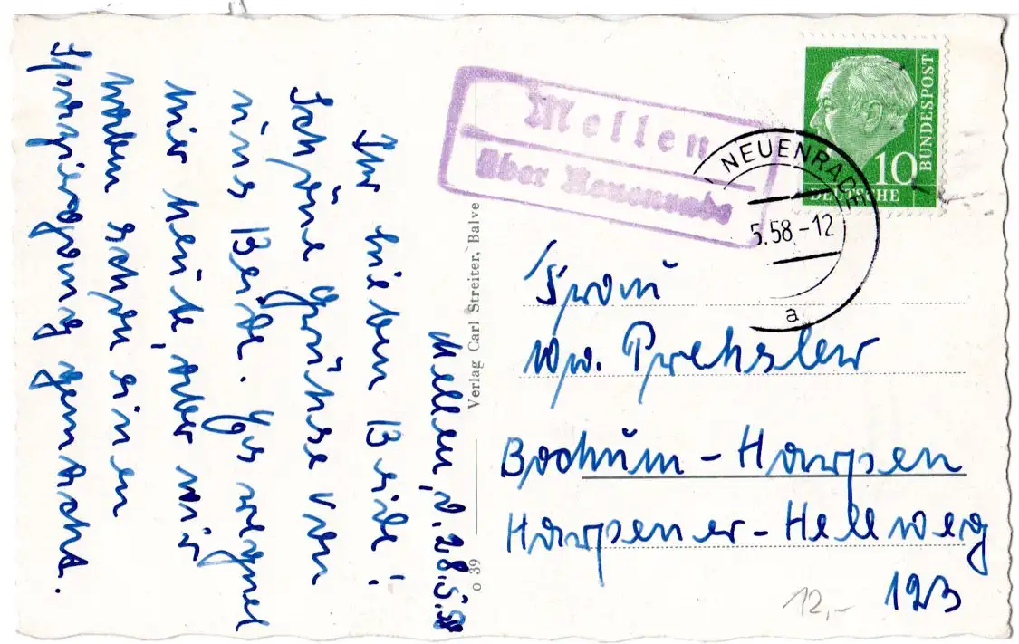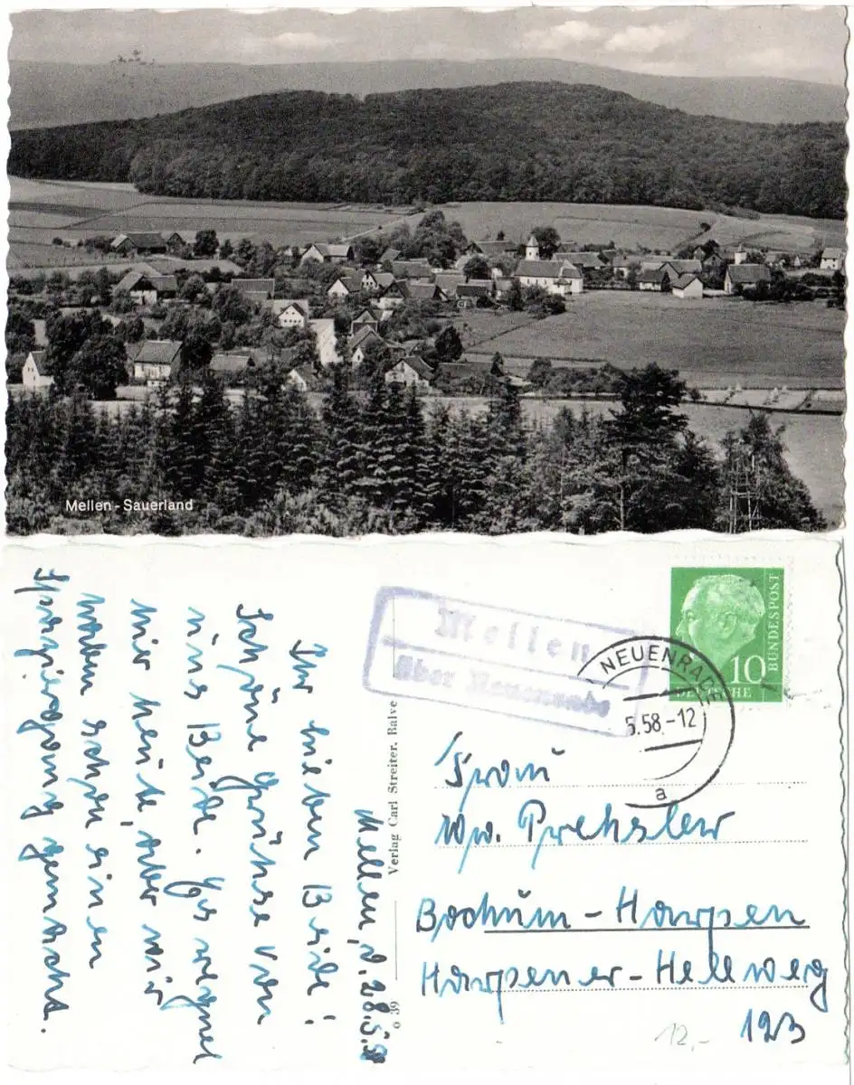 BRD 1963, Landpost Stpl. MELLEN über Neuenrade auf sw-AK m. 10 Pf.