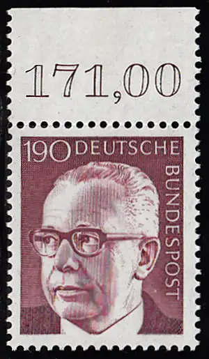 BUND 1972 Michel-Nummer 0732 postfrisch EINZELMARKE RAND oben (b)