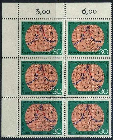 BUND 1973 Michel-Nummer 0760 postfrisch vert.BLOCK(6) ECKRAND oben links