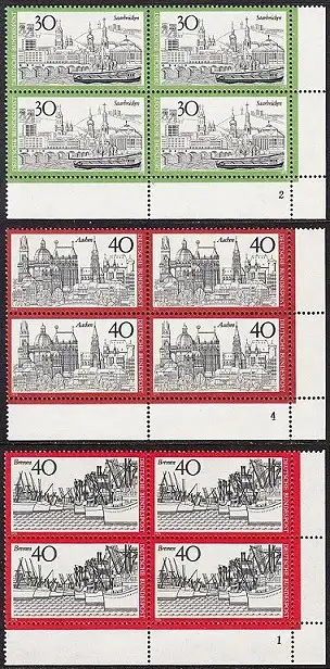 BUND 1973 Michel-Nummer 0787-0789 postfrisch SATZ(3) BLÖCKE ECKRAND unten rechts (FN/b)