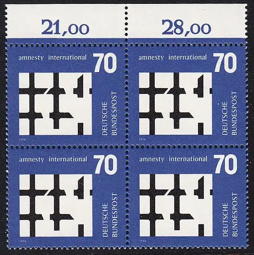 BUND 1974 Michel-Nummer 0814 postfrisch BLOCK RÄNDER oben