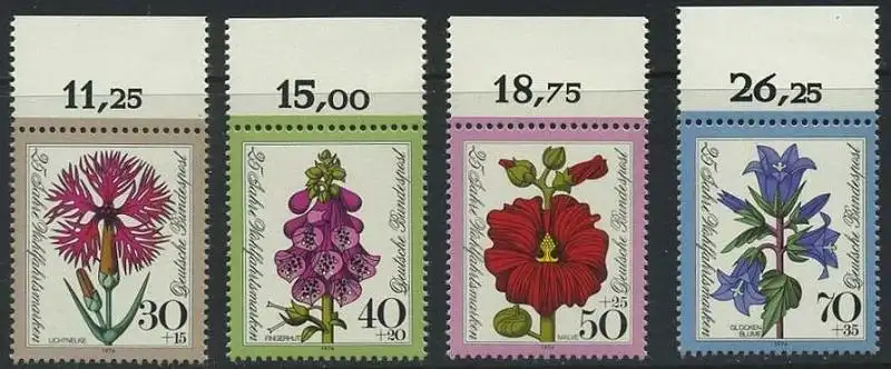 BUND 1974 Michel-Nummer 0818-0821 postfrisch SATZ(4) EINZELMARKEN RÄNDER oben (a)