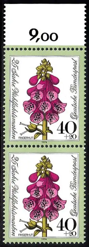 BUND 1974 Michel-Nummer 0819 postfrisch vert.PAAR RAND oben
