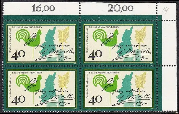 BUND 1975 Michel-Nummer 0842 postfrisch BLOCK ECKRAND oben rechts