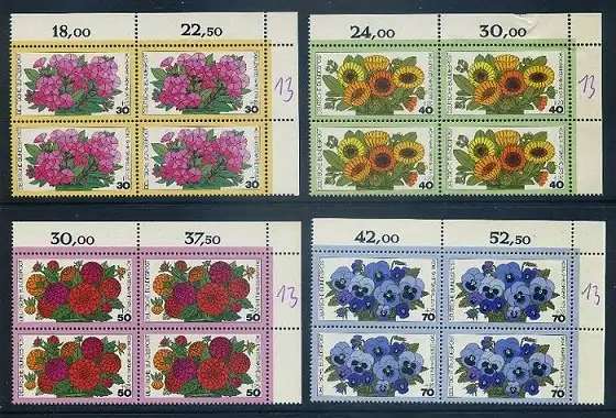 BUND 1976 Michel-Nummer 0904-0907 postfrisch SATZ(4) BLÖCKE ECKRAND oben rechts