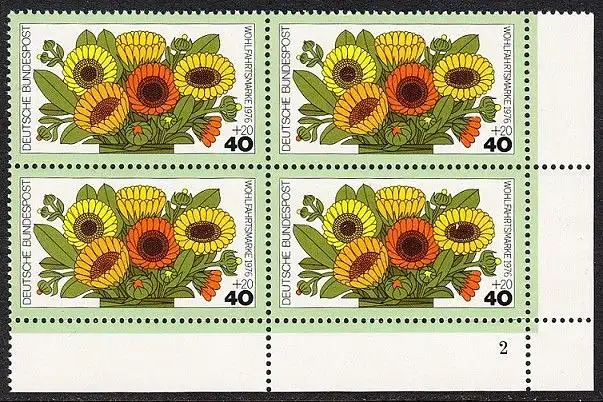 BUND 1976 Michel-Nummer 0905 postfrisch BLOCK ECKRAND unten rechts (FN)