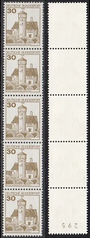 BUND 1977 Michel-Nummer 0914 postfrisch vert.STRIP(5) m/ rücks.Rollennummer 295