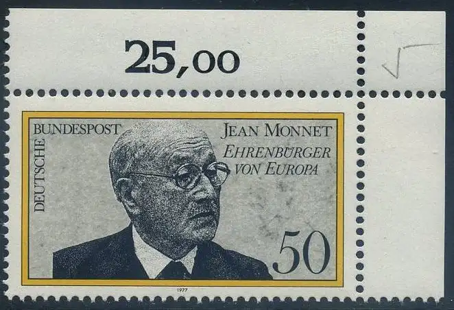 BUND 1977 Michel-Nummer 0926 postfrisch EINZELMARKE ECKRAND oben rechts (b)