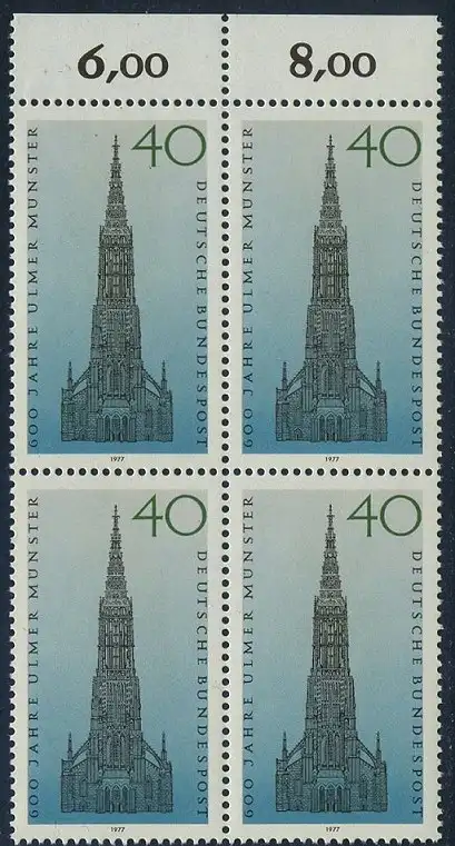 BUND 1977 Michel-Nummer 0937 postfrisch BLOCK RÄNDER oben