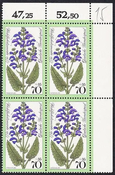 BUND 1977 Michel-Nummer 0952 postfrisch BLOCK ECKRAND oben rechts