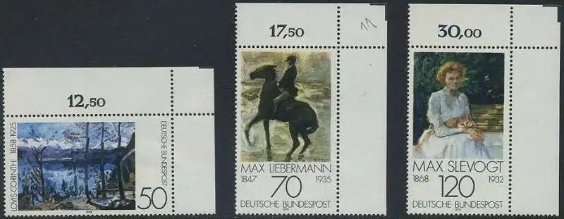 BUND 1978 Michel-Nummer 0986-0988 postfrisch SATZ(3) EINZELMARKEN ECKRÄNDER oben rechts (b)