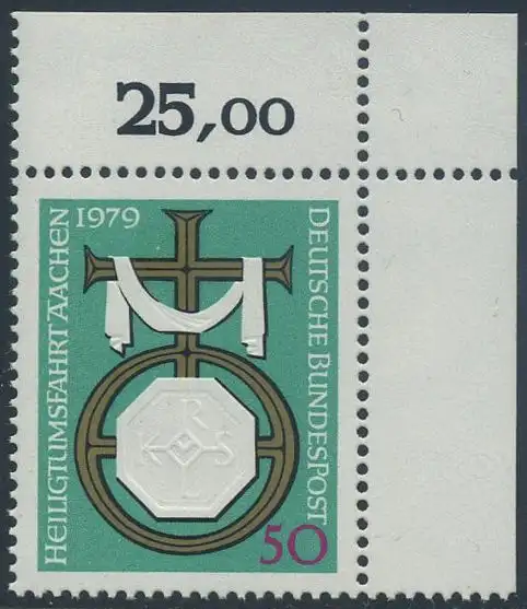 BUND 1979 Michel-Nummer 1017 postfrisch EINZELMARKE ECKRAND oben rechts