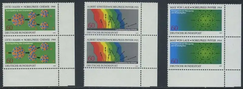 BUND 1979 Michel-Nummer 1019-1021 postfrisch SATZ(3) vert.PAARE ECKRÄNDER unten rechts