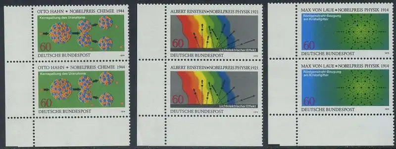 BUND 1979 Michel-Nummer 1019-1021 postfrisch SATZ(3) vet.PAARE ECKRÄNDER unten links