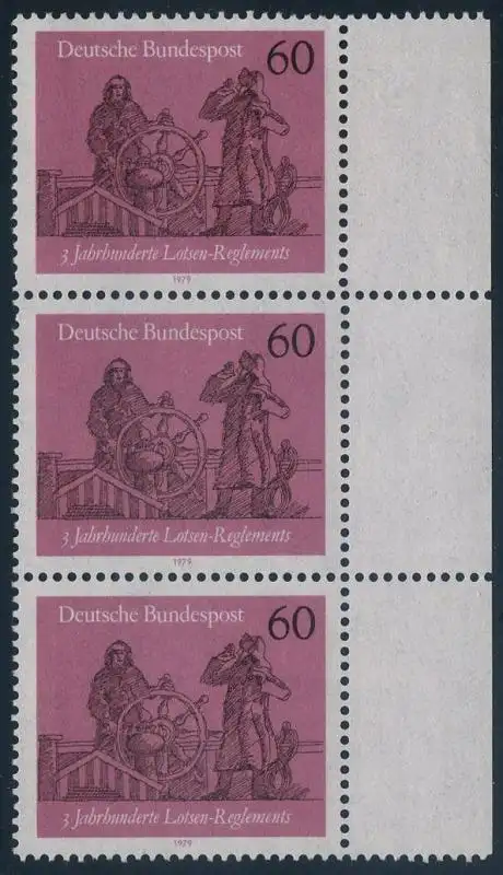 BUND 1979 Michel-Nummer 1022 postfrisch vert.STRIP(3) RAND rechts