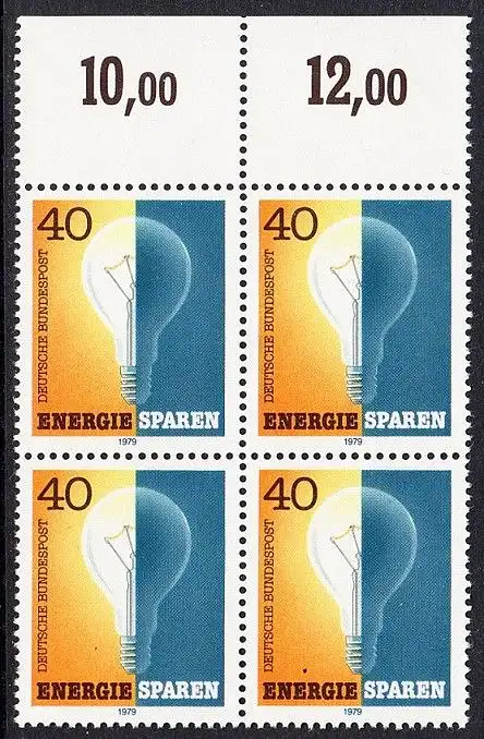 BUND 1979 Michel-Nummer 1031 postfrisch BLOCK RÄNDER oben
