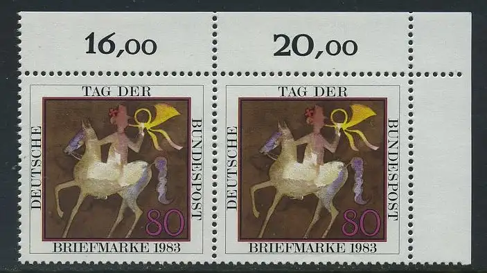 BUND 1983 Michel-Nummer 1192 postfrisch horiz.PAAR ECKRAND oben rechts