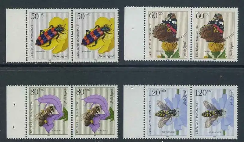 BUND 1984 Michel-Nummer 1202-1205 postfrisch SATZ(4) horiz.PAARE RÄNDER links