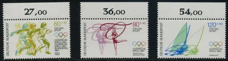 BUND 1984 Michel-Nummer 1206-1208 postfrisch SATZ(3) EINZELMARKEN RÄNDER oben