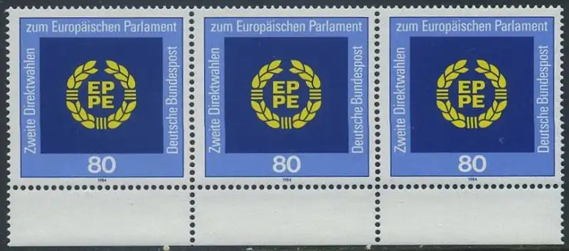 BUND 1984 Michel-Nummer 1209 postfrisch horiz.STRIP(3) RAND unten