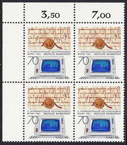 BUND 1984 Michel-Nummer 1224 postfrisch BLOCK ECKRAND oben links
