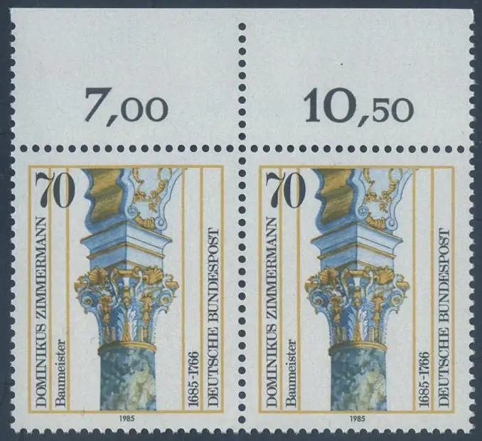 BUND 1985 Michel-Nummer 1251 postfrisch horiz.PAAR RAND oben
