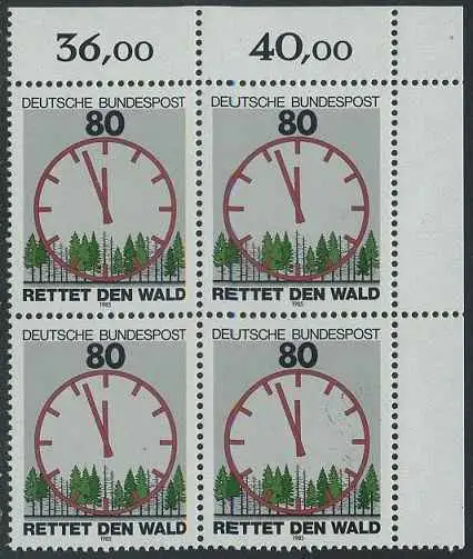 BUND 1985 Michel-Nummer 1253 postfrisch BLOCK ECKRAND oben rechts (b)