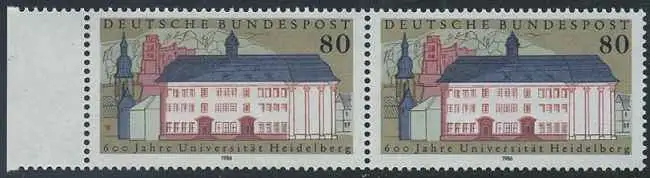 BUND 1986 Michel-Nummer 1299 postfrisch horiz.PAAR RAND links
