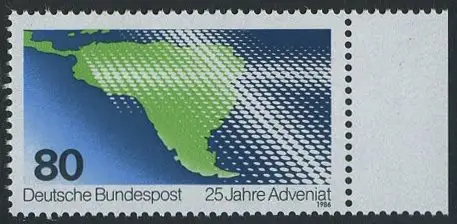 BUND 1986 Michel-Nummer 1302 postfrisch EINZELMARKE RAND rechts