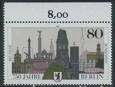 BUND 1987 Michel-Nummer 1306 postfrisch EINZELMARKE RAND oben (a)