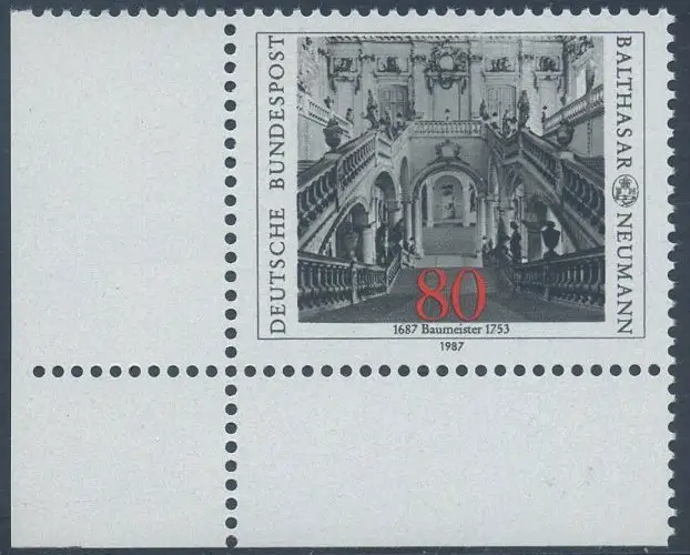 BUND 1987 Michel-Nummer 1307 postfrisch EINZELMARKE ECKRAND unten links