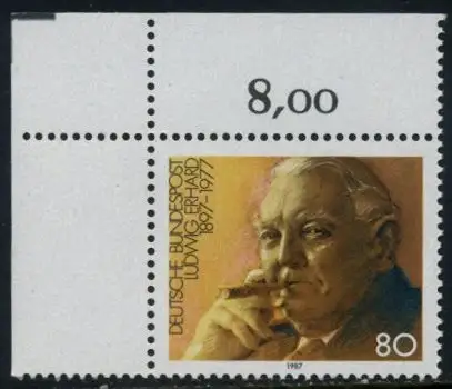 BUND 1987 Michel-Nummer 1308 postfrisch EINZELMARKE ECKRAND oben links
