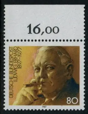 BUND 1987 Michel-Nummer 1308 postfrisch EINZELMARKE RAND oben