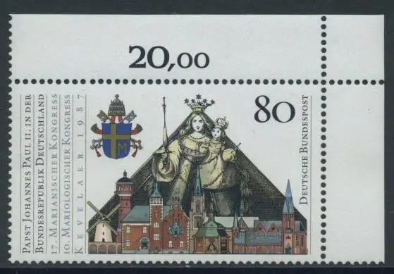 BUND 1987 Michel-Nummer 1320 postfrisch EINZELMARKE ECKRAND oben rechts