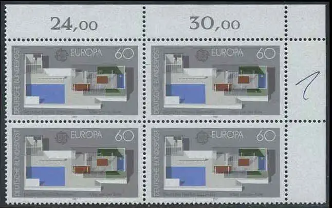 BUND 1987 Michel-Nummer 1321 postfrisch BLOCK ECKRAND oben rechts
